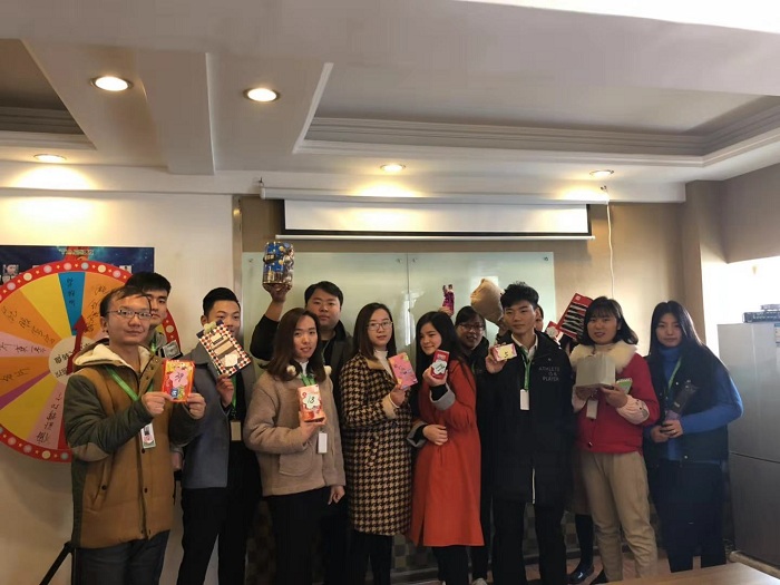 這次的活動是“禮物互換”,在活動之前要求員工每人準備一份小禮物交至人事部,然后由人事部按照交禮物的情況進行登記,編號,貼在禮物外包裝上,抽獎箱里的小球也寫上編號,最后進行抽獎。