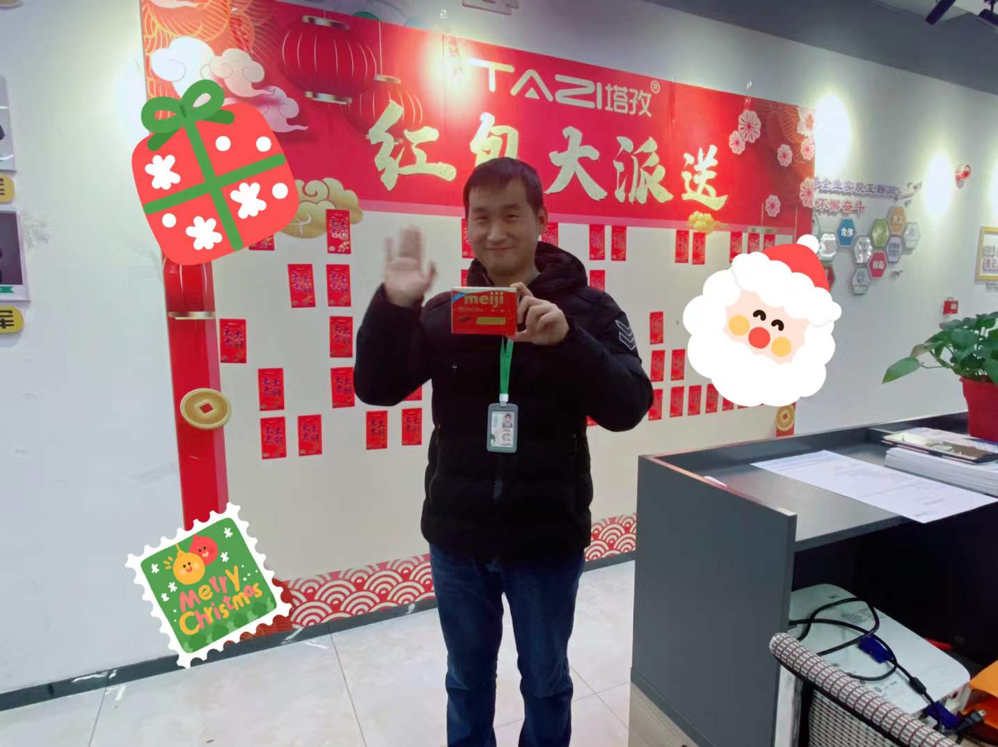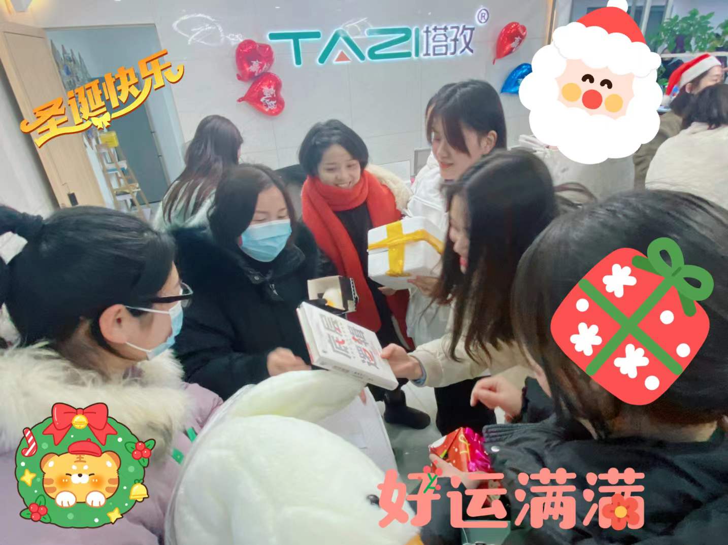 今年是塔孜舉辦“圣誕交換禮物”的第三年。在圣誕前一周發(fā)出征集開始,5天時間,我們陸陸續(xù)續(xù)收到的禮物將公司前臺歡樂的“圣誕海洋”。為增加禮物的神秘感,增加節(jié)日氣氛,人事部對小伙伴們準(zhǔn)備的禮物提前進(jìn)行了包裝,刺激與驚喜并存。